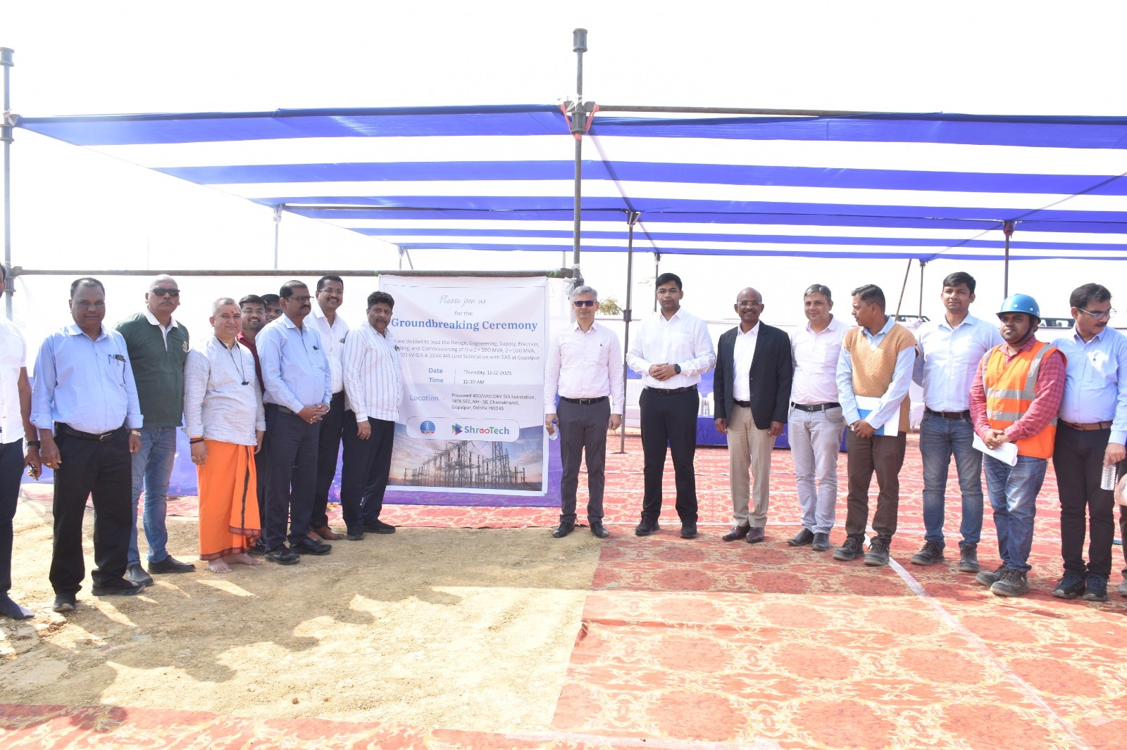 Groundbreaking Ceremony – 400/220/33 kV GIS Substation Odisha.By admin / December 13, 2025 Groundbreaking Ceremony – 400/220/33 kV GIS Substation Odisha. A milestone moment as ShreeTech commenced the 400/220/33 kV GIS Grid Substation project at TATA SEZ, Gopalpur, Odisha, reinforcing its commitment to reliable and future-ready power infrastructure.